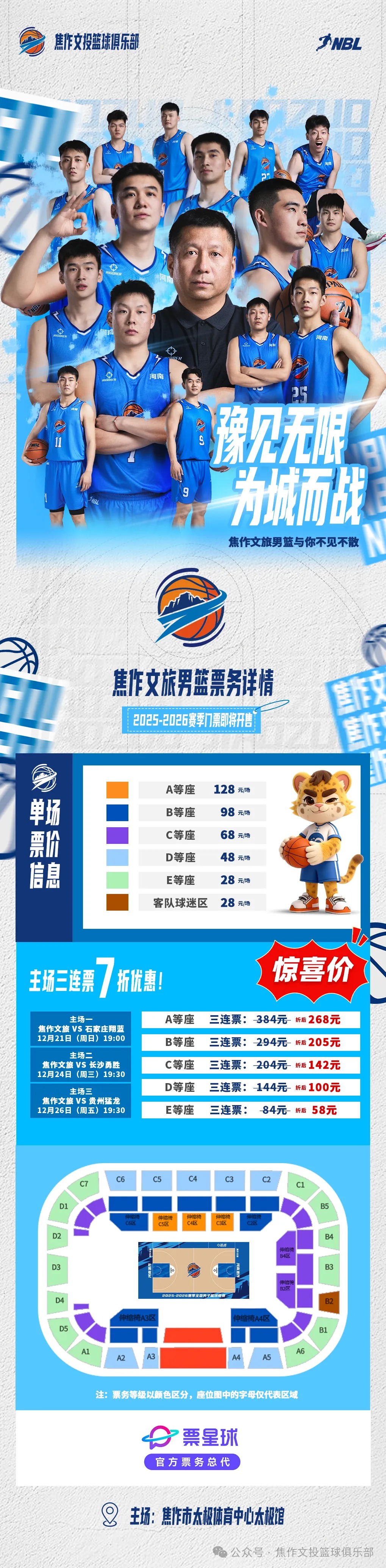 2025-2026 赛季 NBL 河南主场门票火热开售!12月17日10点18分锁定票星球、抖音!快来购票吧!